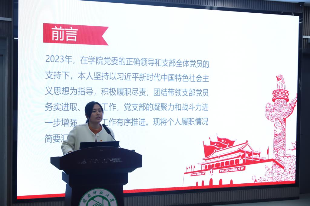 学院党委书记李苗代表学院党委对各支部书记年度抓党建工作情况进行逐一点评,充分肯定了各党支部党建工作取得的成绩,述职汇报工作准备充分,查摆问题透彻,整改措施扎实,也逐一指出了各支部在党建工作中存在的问题及改进建议,并就进一步做好2024年支部党建工作提出目标要求: