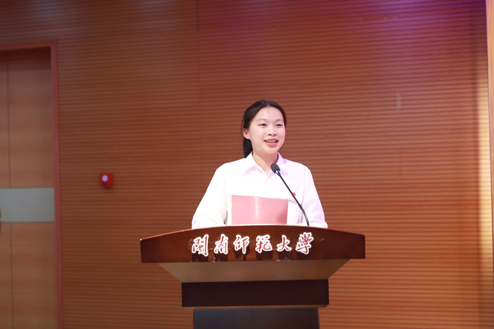 新党员代表2022级化学(师范)2班的罗楠向党组织表决心。她表示,将以此次宣誓为新的起点,牢记党的嘱托,努力学习专业知识,提高自身素质,服务同学,争做先锋,以实际行动践行初心使命。
