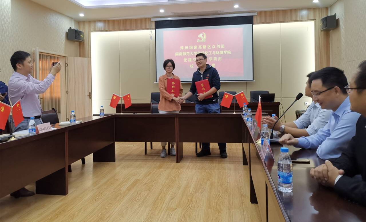 参观结束之后,双方进行党建共建校企合作项目的签约,双方就“党建引领、产学研用”创新融合发展模式进行深入交流探讨,并达成校企合作共识。双方一致同意加强校企党建共建、合作联动相互促进发展,发挥结对双方党组织的自身优势,定期交流党建工作经验,共享党建工作信息,共同研究党建课题,不断提高基层党建工作的针对性和实效性,提高党组织的凝聚力和服务水平。在人才培养和合作交流方面,建立校企合作基地,以漳州高新区众创园为桥梁、辐射高新区其他科创园区企业、集成电子产业园、智能制造产业园等产业园区的企业,推动产学研用创新融合。高校发挥技术优势,寻求科研成果的实际转化,并指导企业进行技术创新,提升企业的市场竞争力。同时以当地产业需求为导向,加强人才培养合作,为企业输送高端人才,实现人才精准对接,切实推进校企全方面合作,实现共赢发展。