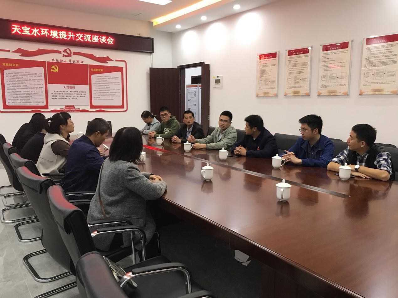 在水环境提升校地合作项目中所提供的技术支持表示感谢,希望双方继续加强合作,进一步提升水环境质量。黄泱老师详细介绍了后期水体修复和水质提升方案;支部书记黄明强表示将结合党建工作,带动更多老师和同学参与生态环境修复工作中。最后,汪庆祥院长代表学院对天宝镇在项目开展中提供的必要帮助表示感谢,并表示学院将全力支持下一阶段生态修复工作的开展,并希望双方加强合作,共同举办水环境修复、治理等相关会议,总结治理经验,宣传处理成效。