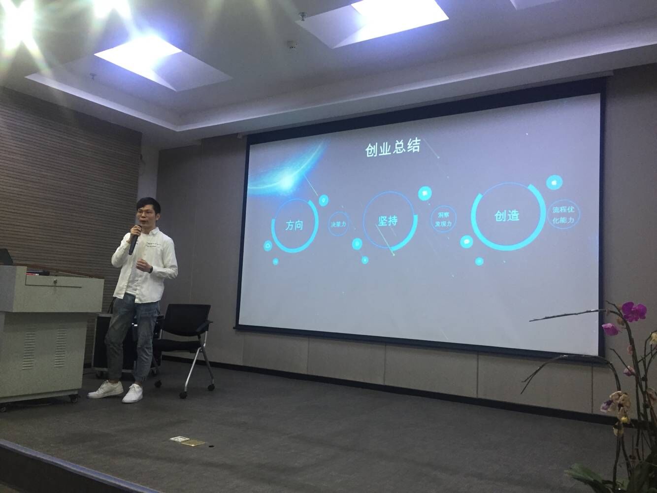 在众创园会议室,两位创业达人福建郭家酱网络传媒有限公司老总郭振荣和漳州市摩贝网络科技有限公司创始人张小新先后向同学们分享了自己的创业历程和感悟。郭振荣先生凭借高度的市场敏锐力和爱国爱乡情怀,通过将流落美国的月港老技艺“郭家酱”引回祖国,并构建起互联网“郭家酱”酱料品牌这一创业历程,生动诠释了持之以恒专心做一件事情的重要性。96年出生张小新,已有着丰富的创业经历,这位“资深”创业者,以创业与做生意的区别谈起,从方向、坚持和创造三个方面进行了自身创业总结,并阐释了如何更好地作出机会判断和树立坚持不懈创新求变这一价值观的重要性。讲座过程中,同学们积极参与互动交流,踊跃提问,现场气氛热烈。最后,学院党委副书记陈丽新老师作总结发言,她首先感谢金峰管委会和金峰众创园的热情接待,感谢两位创业者的精彩分享,鼓励同学们要拿出创新创业的信心和勇气,一旦选定创业目标,就要实实在在,心无旁骛地去做,真正做到在创新创业中增长智慧才干。