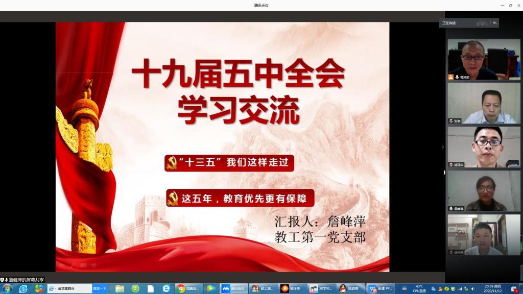 教工第一党支部在线上召开学习、贯彻党的十九届五中全会精神专题学习交流会议,会议由支部书记郭鸿旭教授主持。学院党委副书记陈丽新和学院副院长、纪委书记张骁作为普通党员参加了学习交流会。