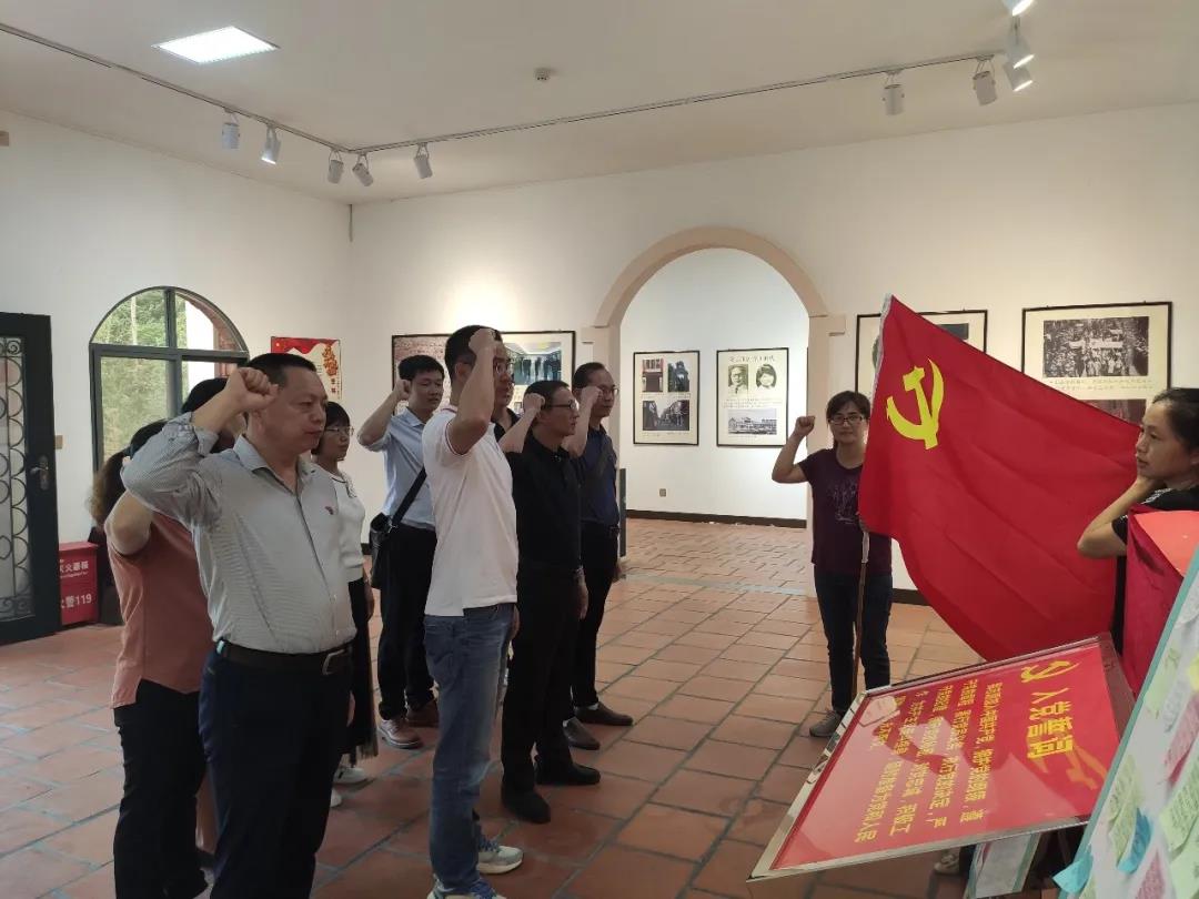 参观学习完毕,支部宣传委员周凌云带领全体支部党员现场进行了重温入党誓词活动,大家纷纷举起右手,面向党旗,庄严宣誓,真诚地表达了对抗日时期革命精神的缅怀与无限敬仰之情。