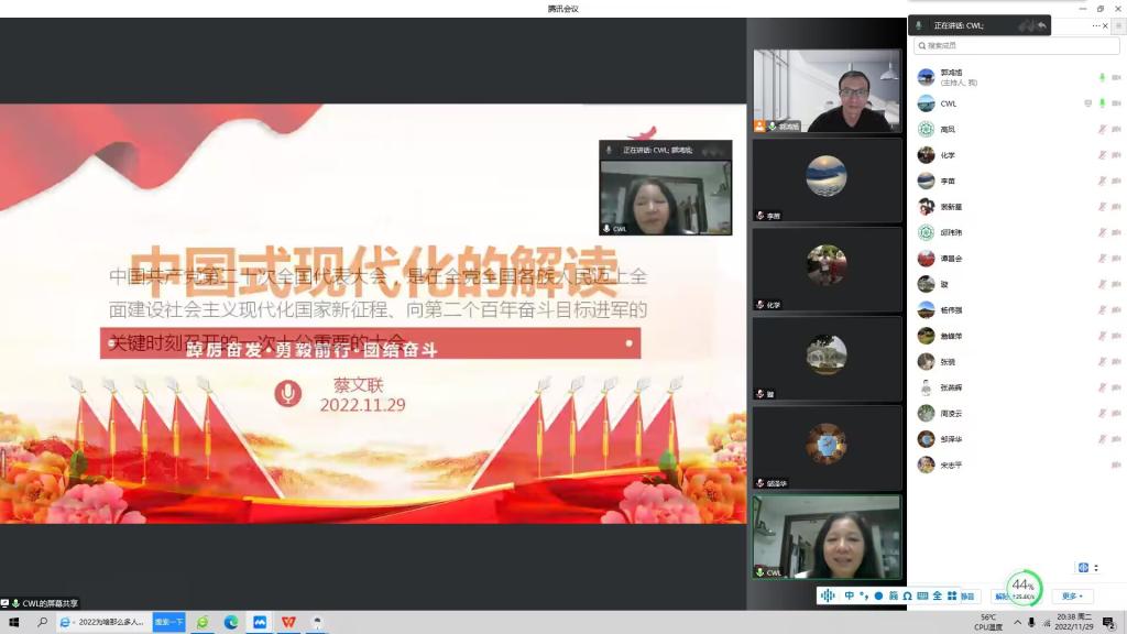 为深入学习贯彻党的二十大精神,切实将党的二十大精神学深悟透,11月29日晚,学院党委书记李苗及校巡察办公室主任蔡文联分别通过腾讯会议为党支部工作联系点教工第一党支部全体党员讲授二十大精神专题党课。专题党课由党支部书记郭鸿旭主持。