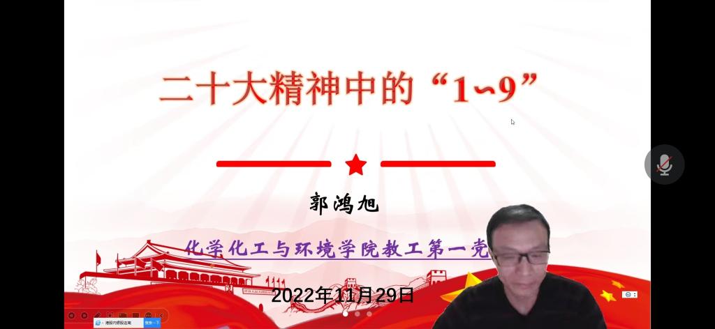 最后,支部书记郭鸿旭“数说”二十大精神中的一些关键词,号召支部党员认真领会二十大报告提出的“实施科教兴国战略,强化现代化建设人才支撑”重要论断,牢记习近平总书记的殷切嘱托,全面落实立德树人根本任务,坚持为党育人、为国育才,结合本职岗位实际做好教书育人工作,为学校及学院的新一轮改革发展事业贡献一份力量。