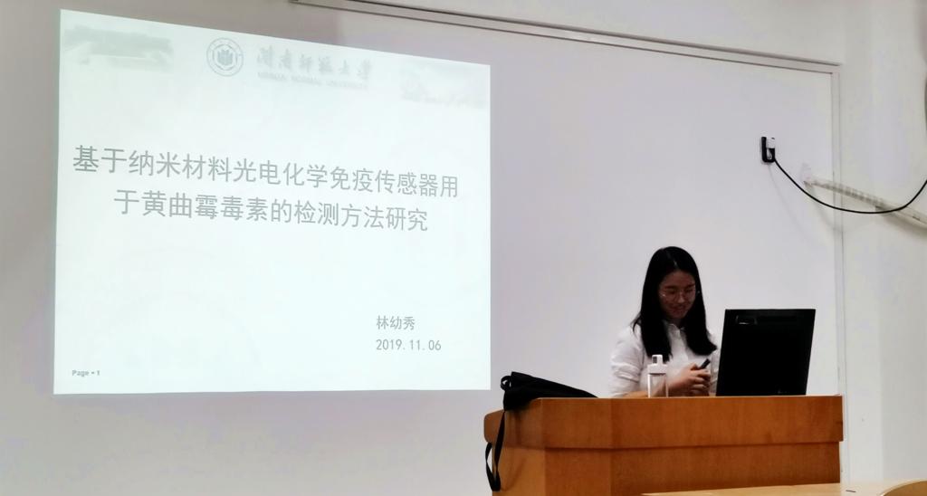 11月6日晚,林幼秀博士在科技楼北903,给大家带来了一场精彩的讲座。本次讲座以“基于纳米材料光电化学免疫传感器用于黄曲霉素的检测方法研究”为题,由陈建华副院长主持,色色动漫