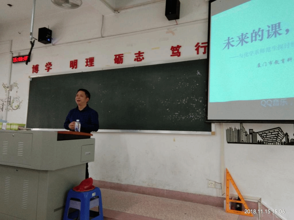 1993级化学专业校友、厦门教育科学研究院化学教研员王锋老师应邀来校为师范专业本科生作了《备课未来——谈核心素养背景下化学师范生发展规划》讲座,色色动漫