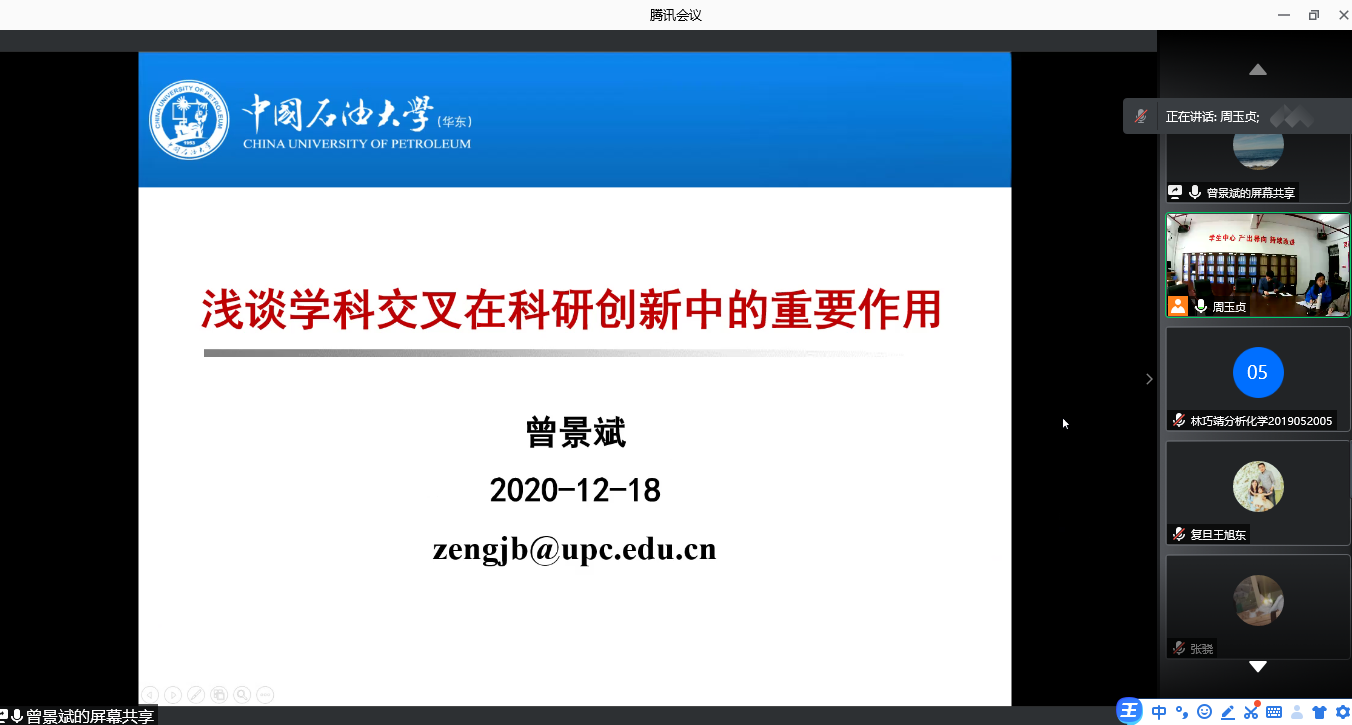 12月18日上午,中国石油大学教授、山东省突出贡献中青年专家、青岛市青年科技奖获得者,兼任中国化学快报(英文版)青年编委、Sensors and Actuators Report (Elsevier)编委、Frontier in Chemistry客座编辑曾景斌教授应邀为色色动漫