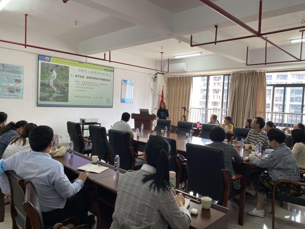 报告中,张媛媛专家从三个大板块讲述了生命关怀教育的实践意义。首先从生命的定义、动物在儿童与自然之间的作用及与动物相处时儿童亲社会行为的习得三方面讲述了动物在儿童教育中的意义。其次,张媛媛教授分享了当前教育中与动物相关的内容存在的一些问题,如将动物拟人化过程中缺乏动物伦理常识、以反面形象构建对动物的刻板印象等会消耗儿童对动物的好奇,造成学生科学观的困扰。最后,张媛媛教授介绍了生命关怀教育的教学体系:生命关怀教育是以科学教育、动物行为、心理学为理论基础构建的,教学体系包括生命之网、生命的感知、关怀与尊重、友善相处和情感智力共五个部分,教学开展的方法多为项目式、专题式等,以此来发展学生的同理心、慎辩性思维。