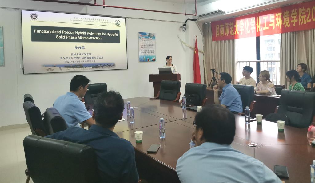 师生作题为“Functionalized Porous Hybrid Polymers for Specific Solid Phase Microextraction”的学术报告,此次报告由院长汪庆祥教授主持,色色动漫