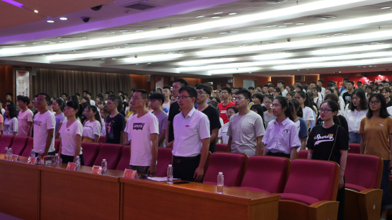 2019级新生开学典礼在校逸夫图书馆5楼报告厅隆重举行。院党委书记李建辉、院长汪庆祥、院党委副书记陈丽新、副院长陈建华,副院长张茂升,副院长张骁,全体政工干部和2019级新生班主任及2019级380名新同学(本科生349人,研究生31人)共同参加了本次开学典礼。典礼由院团委副书记杨文亮老师主持。
