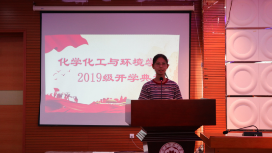 2019级化本专业的李晓颖声情并茂地为大家讲述了来到闽南师大的感受,表达了对大学的美好向往和对未来的远大追求。最后,她代表全体新生立下誓言,要奋发图强,为未来而拼搏,为学院增光添彩。