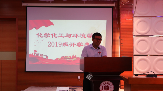 汪庆祥院长首先代表全院教职员工向新同学们的到来表示热烈的欢迎和祝贺,并向新同学们介绍了学院历史、科研成绩、仪器设备等方面情况。接着他详细介绍了化学学科在各行各业如生命科学、AI智能等方面中的实际应用。他希望同学们尽快融入到这个温暖的大家庭,牢固树立专业思想和信念,学习上要依旧保持自觉性,努力适应社会发展需要,不负青春,不负众望。