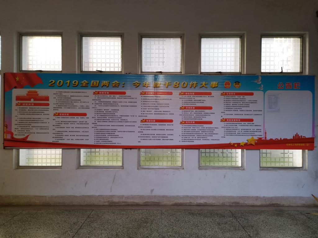 坚持大生活观、大文化观理念,高度重视宿舍区专业文化建设,营造良好的生活学习环境。如将“3分钟读懂2019年政府工作报告2019全国两会”、“今年要干80件大事”、“习近平参加福建代表团审议金句意境隽永”、“看习近平两会期间如何用典”等作为宣传栏内容,在楼道、拐角等处制作张贴带有浓郁化学专业符号的文明宣传板块,将政治学习、专业文化融入生活,实现让温暖进寝室、让文化进寝室、让文明进寝室的高层次目标要求。