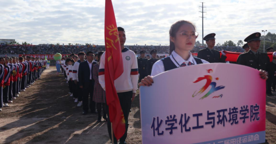 作为第一个入场的学院方队,展现了非凡的气势与化院学子积极向上的精神风貌。在院党委副书记陈丽新,团委副书记杨文亮,辅导员黄富英的带领下,全院师生以饱满的精神,矫健的步伐,气宇轩昂的潇洒英姿成为开幕式上一道亮丽的风景线。