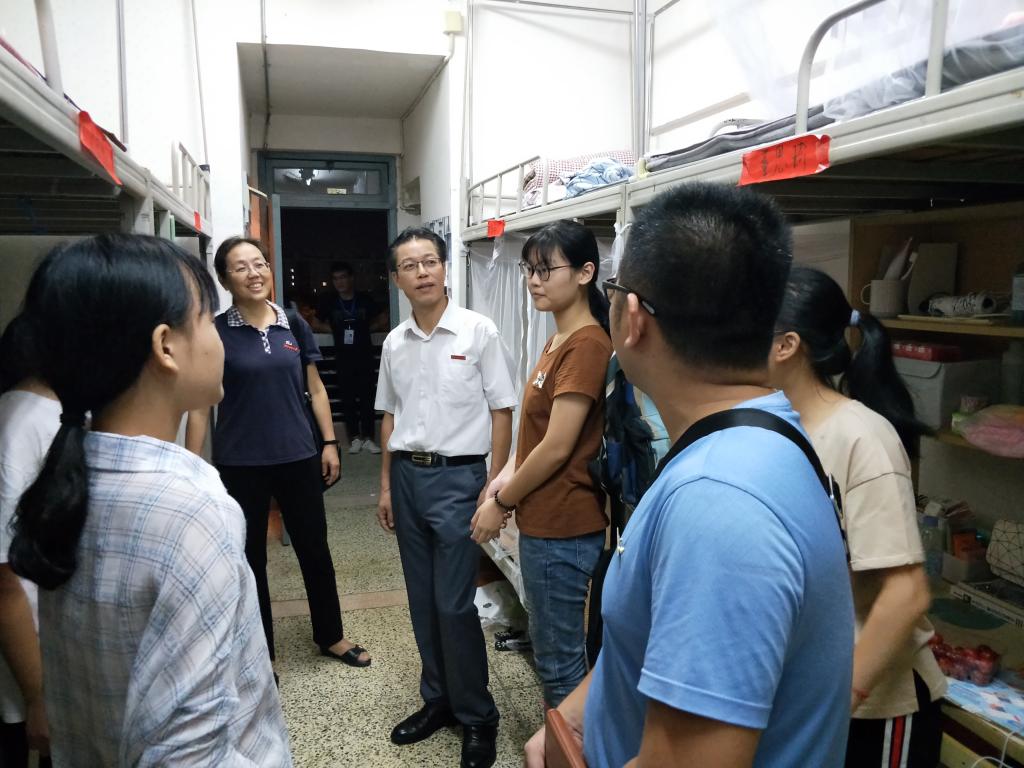 党委李建辉书记、蔡文联院长、高飞副院长、全体政工干部和18级新生班主任来到达理学生公寓3号楼和8号楼进行走访。