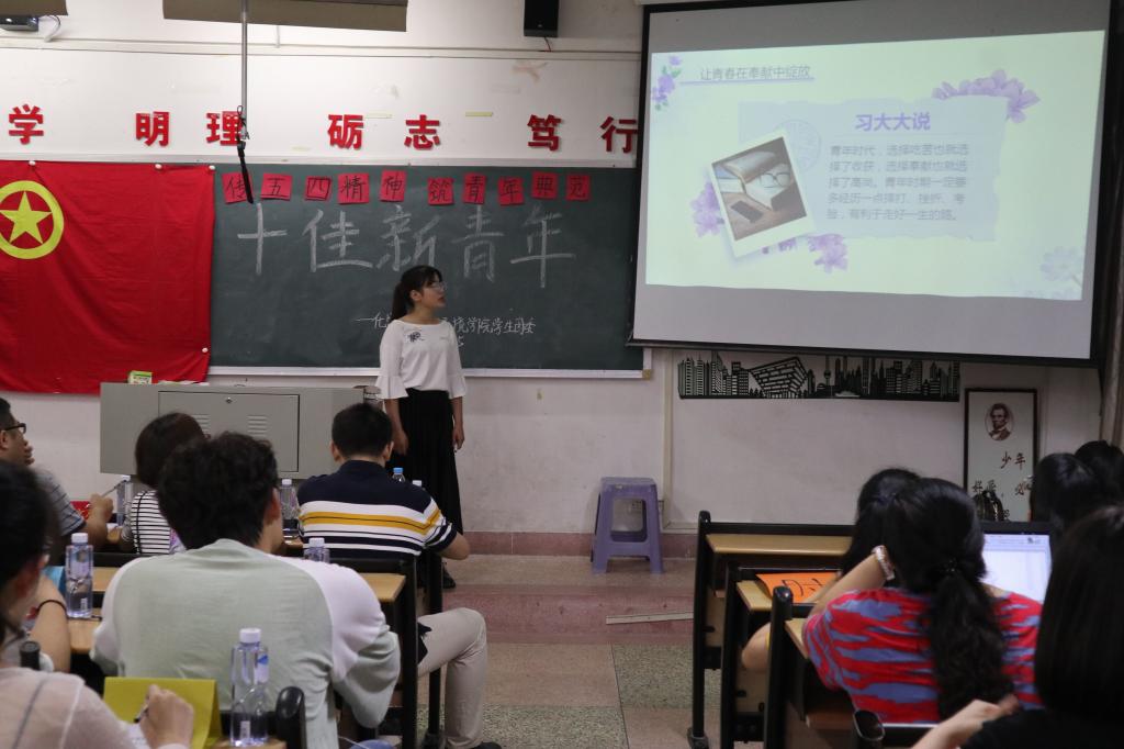 举办了以“传五四精神,筑青年典范”为主题的十佳新青年评选活动。本次活动由学院团委主办,院学生团委承办。院党委副书记陈丽新老师,院团委副书记杨文亮老师,辅导员李伟老师和黄富英老师及院九大组织A类干部出席本次活动并担任评委。