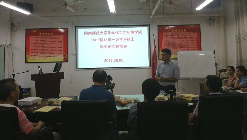 在达中107举行2019届化学一级学科硕士毕业论文答辩会。本次答辩委员会主席由厦门大学博士生导师陈曦教授担任,答辩委员会成员有福建师范大学博士生导师项生昌教授、华侨大学博士生导师骆耿耿教授及色色动漫