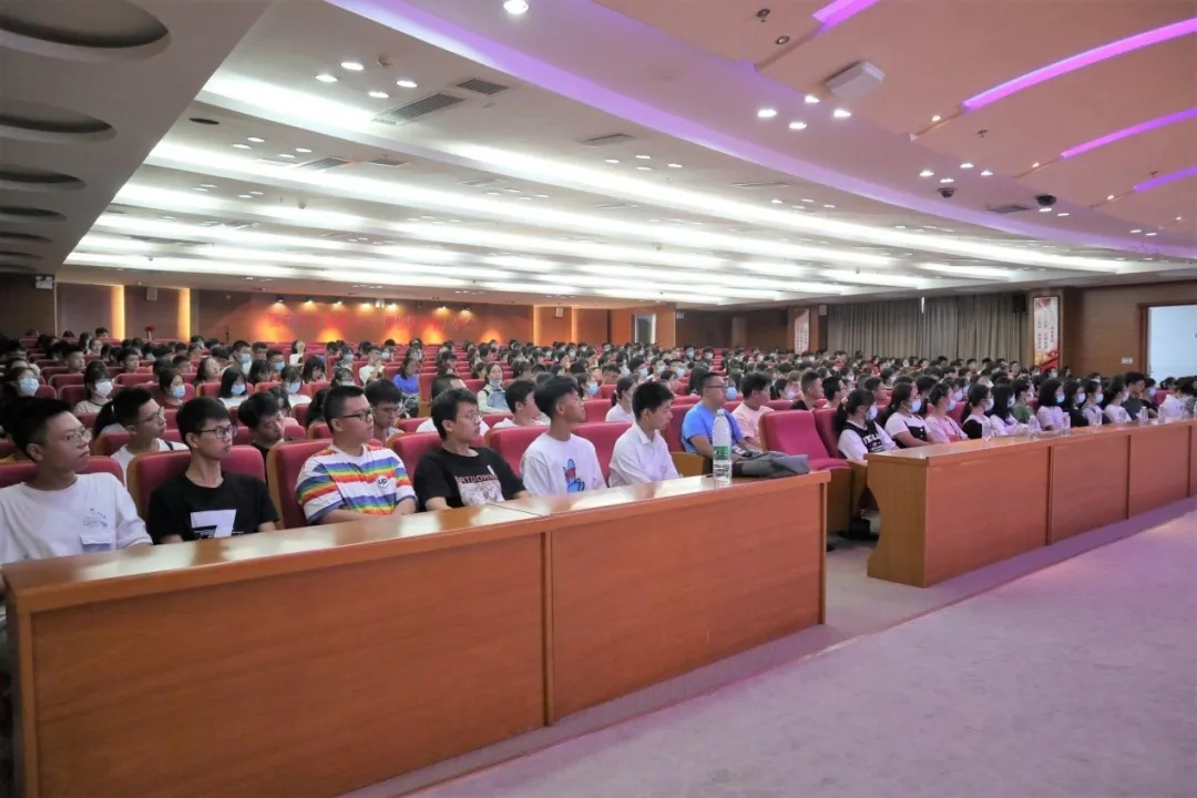 2020级全体新生带来入学教育第一讲《在自我完善中温暖前行》,讲座由院党委副书记陈丽新主持。