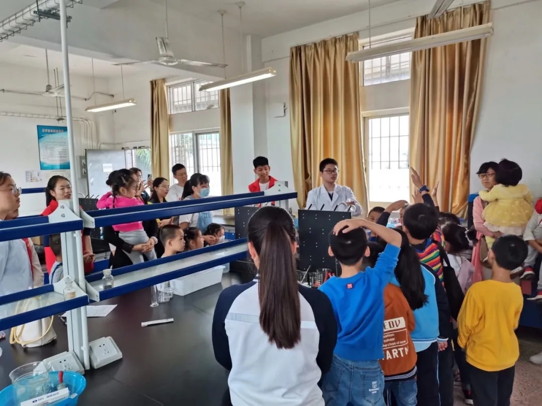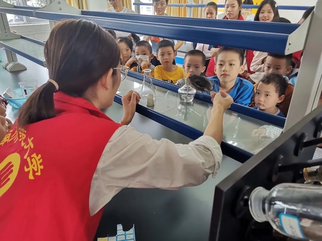 在志愿者们的带领下,小朋友们一一排队,井然有序的进入实验室内。过程中,志愿者小老师们用简单幽默的语言,为小朋友们讲解参观实验室需要注意的基本安全问题,实验室内基本的玻璃器皿,并为小朋友们展示了燃烧的科学实验。看到那些神奇的现象时,小朋友们纷纷露出了惊讶的表情,甚至有的小朋友们跃跃欲试,想要自己操作一番,整个氛围热情满满。一些小朋友们还大胆分享了自己在日常生活中所见到的类似科学现象,并积极分享自己所了解到的科学知识。