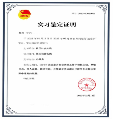 寒假期间的社会实践活动是学校教育向课堂外的一种延伸,也是推进素养教育进程的重要手段。它有助于当代学生接触社会、了解社会。并且,实践也是学生学习知识、锻炼才能的有效途径,更是学生服务社会、回报社会的一种良好形式。所以我参加了寒假"返家乡"社会实践岗位,并在在这次活动中学到了许多。