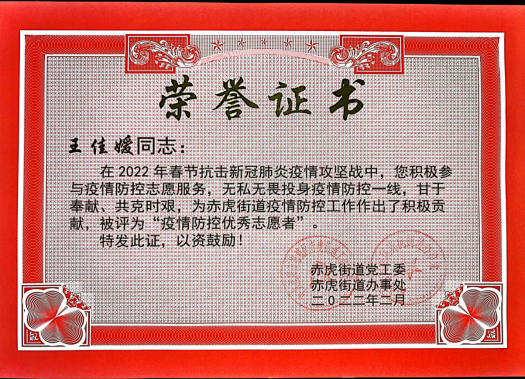 疯狂的疫情,摧不垮我们坚强的斗志;凛冽的寒风,吹不灭我们心中的激情!路口哨卡有我们筑起牢固的屏障!在这几天的志愿者服务中让我深深感受到什么是初心使命,什么是责任担当。白衣天使、人民警察、政府官员、大学老师对我的影响及教育,使我更加坚信:只要人人都为疫情防控贡献自己的一份力量,不怕困难,迎难而上,疫情一定会很快过去,祖国会更加美好!
