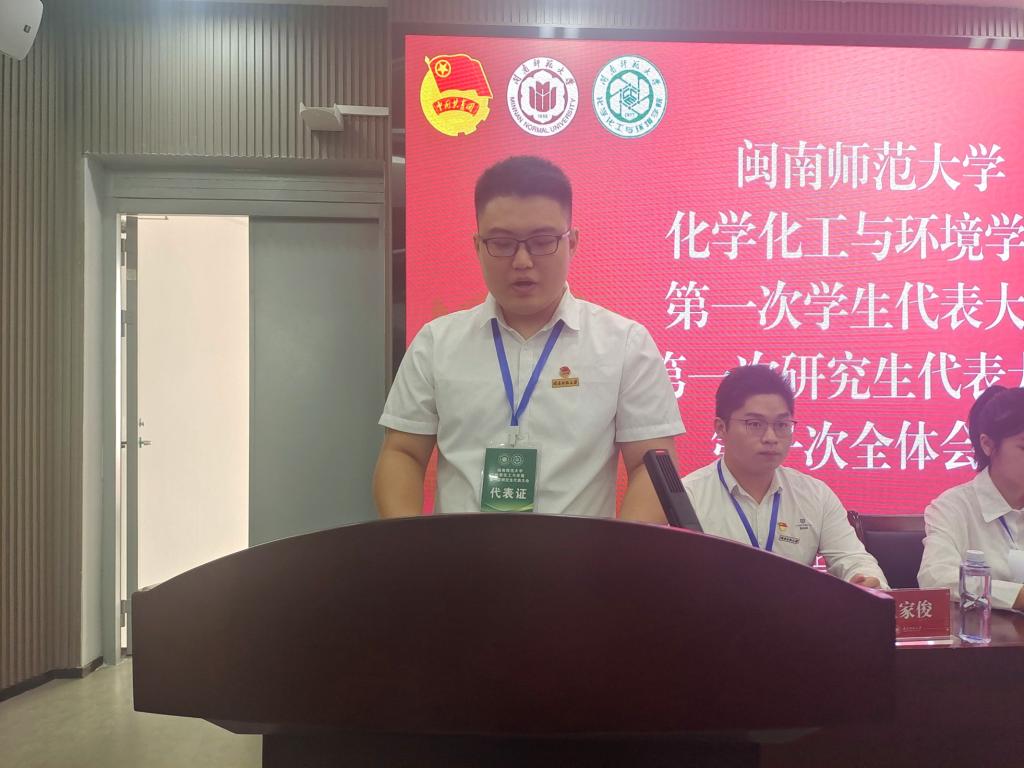 院研究生会主席团成员牛百通代表研究生委员会作第一次研究生代表大会工作报告。
