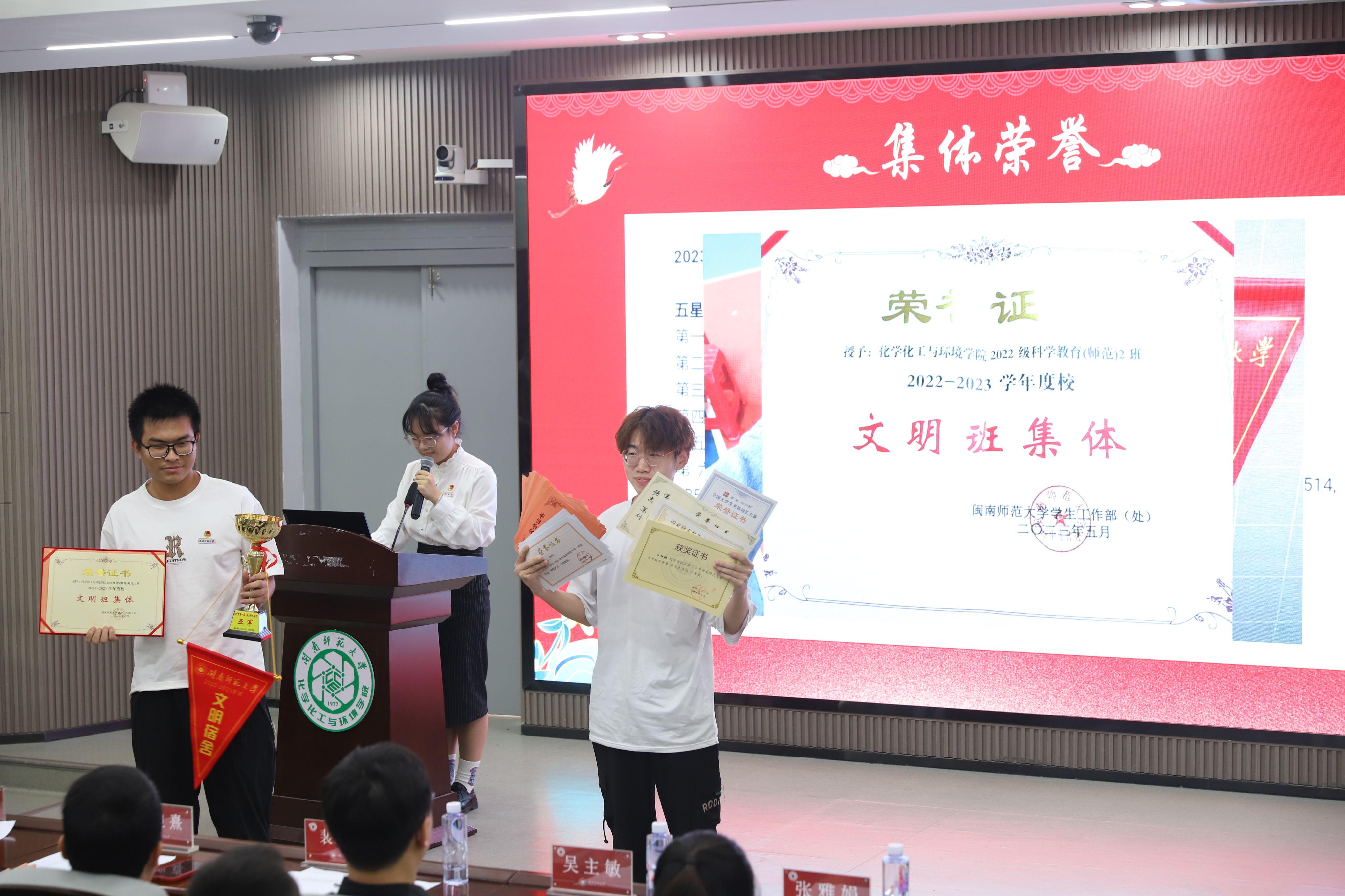 2023年度‘五四红旗团支部’暨‘文明班集体’评选会”。特邀院党委副书记裴新星、校宣传部、统战部创建科科长林迎熹、校学生处综合科科长吴主敏、校团委社团工作部副部长张雅娟、院团委书记杨文亮以及各年级辅导员出席本次会议。