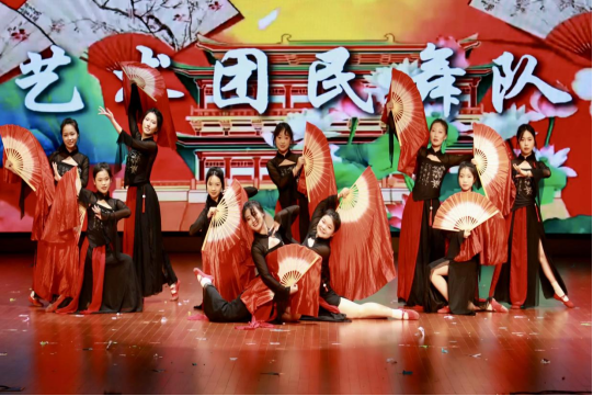 舞衫回袖似春风,歌扇当窗沐秋月。一把绸扇舞青春,一曲唢呐震九州。万古江河,春回大地九州同。舞动九州,望少年逐梦千里。民舞《九州同》舞姿曼妙,给观众带来了一场视觉盛宴。