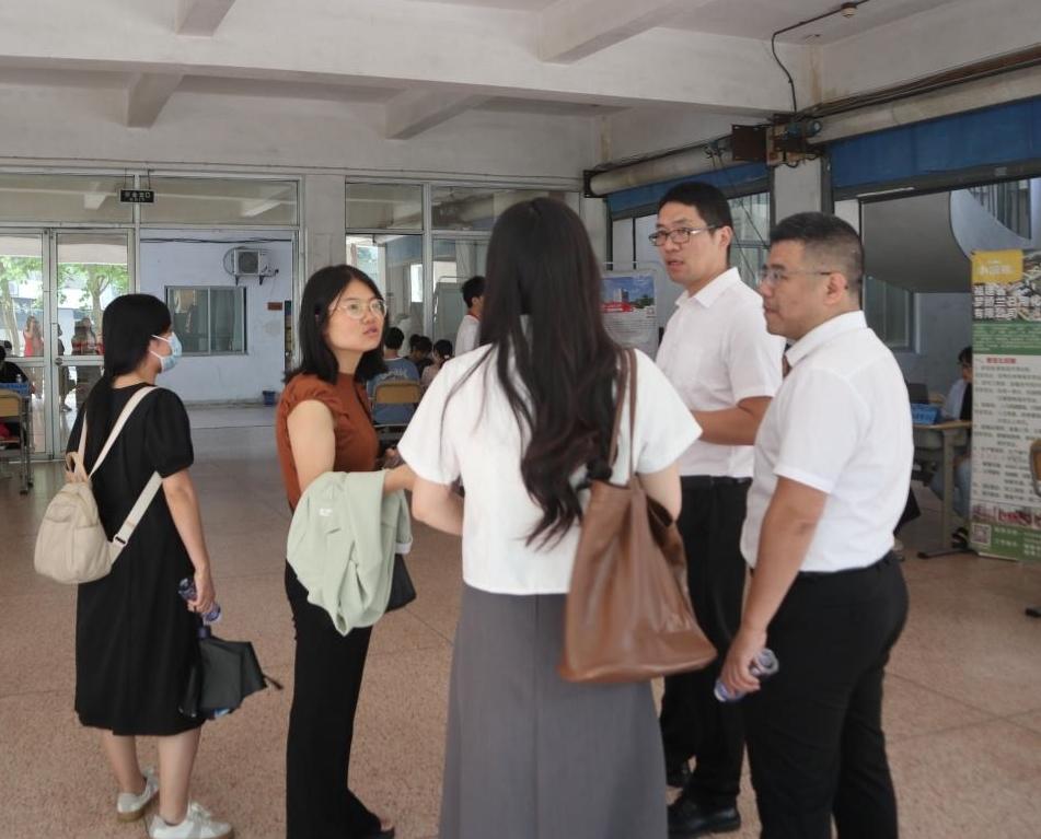 党委副书记裴新星老师,院团委书记杨文亮老师,20级辅导员黄富英老师走近招聘会现场调研指导,深入多个招聘单位,与用人单位招聘人员及应聘学生进行深入交流,了解企业发展情况、用人需求以及招聘过程中的难点卡点,主动为应届毕业生就业提供服务。