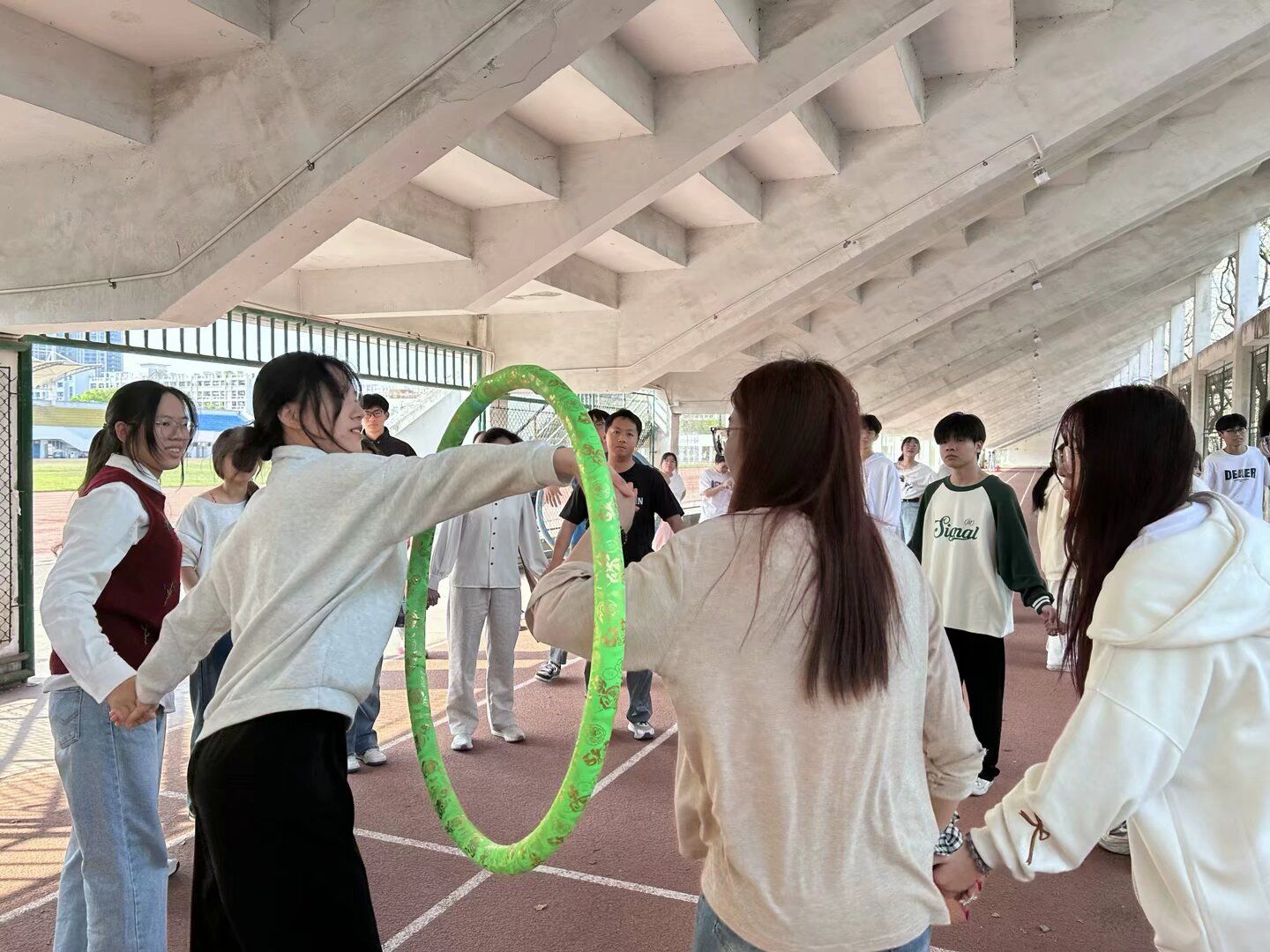 第十七期青马工程之菁英培训班团辅活动于西田风雨跑道成功开展。本次团辅活动以团队协作为核心,精心设计了一系列游戏,让学员们在欢乐中收获成长,在协作中增进友谊。活动开篇,“名字串串烧”这一热身环节,让各小组成员们在轻松的氛围中快速熟悉彼此,打破了陌生感。随后,学员们进行了“筷子夹球”、“一圈到底”和“隔空传纸”等游戏挑战。此次活动不仅增强了学员之间的信任与默契,也让大家明白了在面对困难时,只有心往一处想,劲往一处使,才能共同攻克难关、高效达成目标。