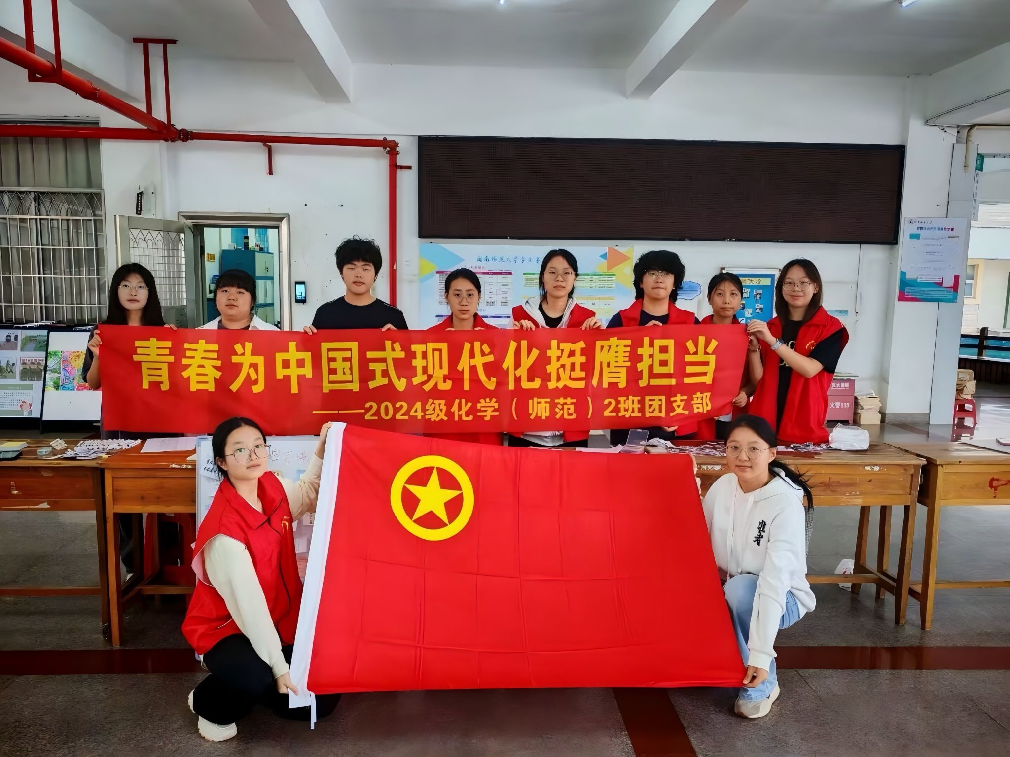 24级化师2班团支部积极策划和开展“印忆五四,薪火相传青春行”班级志愿活动,以实践活动为创新载体,架设青年与社会的连接桥梁。通过“手印绘青春,传承共前行”创作、“青春宣言,觉醒力量”书写等活动,为同学们搭建展示自我与交流学习的平台。面向未来,青年将以清澈纯粹之心当好青年之友,在思想引领中铸魂,在组织建设中聚力,在文艺实践中育人;以钢筋铁骨之姿勇立时代潮头,在党的旗帜下谱写为中国式现代化挺膺担当的壮丽青春篇章。