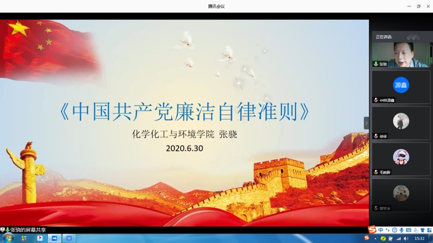 纪委书记张骁通过腾讯会议为全体毕业班党员及挂钩联系指导的学生第二党支部党员开展一次线上廉洁警示教育,推动广大党员增强纪律意识,规矩意识。
