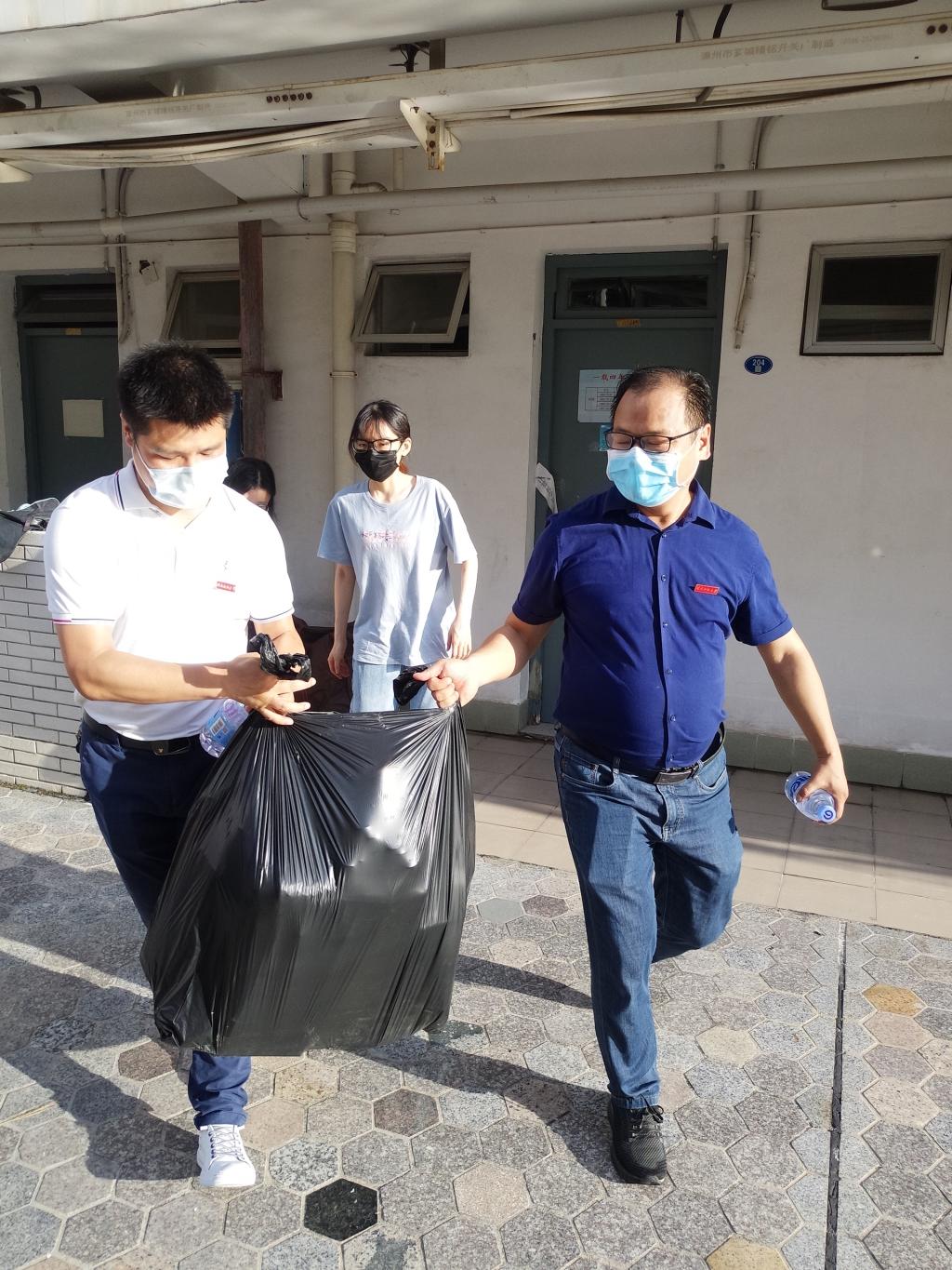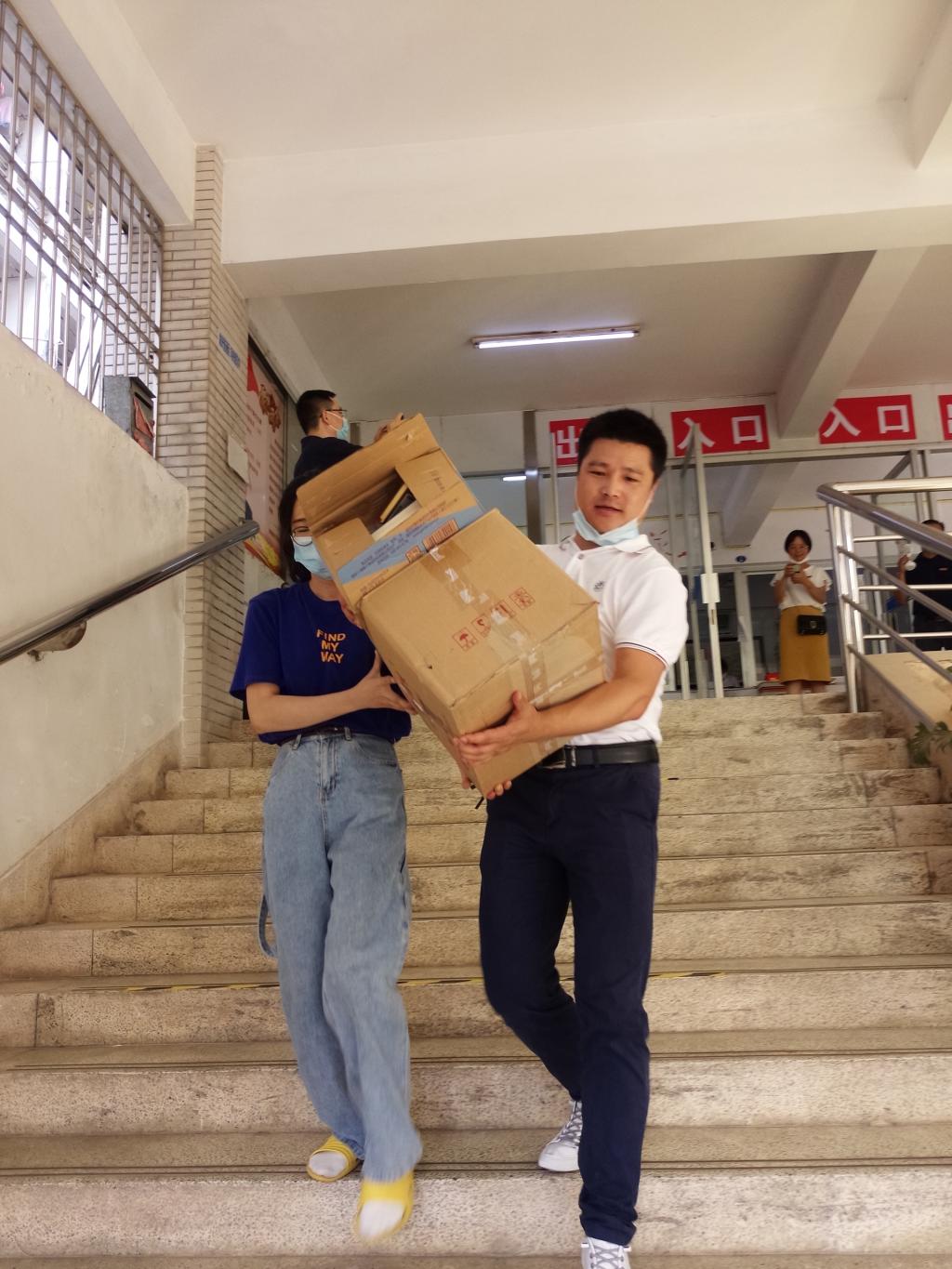 为了让返校毕业生们顺利邮寄自己的物品,学院领导老师来宿舍慰问的同时,帮助毕业生用编织袋打包行李,并帮助同学们运输行李到邮寄点。