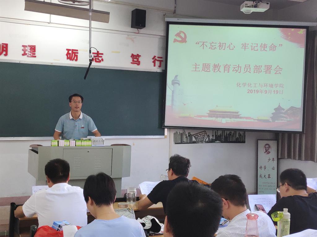 “不忘初心、牢记使命”主题教育实施方案进行了详细解读。他指出,开展“不忘初心、牢记使命”主题教育,是党中央在中华人民共和国成立70周年背景下作出的重要决策部署,具有重要的历史意义和现实意义。全体党员要切实提高政治站位,把深入学习贯彻习近平新时代中国特色社会主义思想作为根本任务,紧紧围绕为党育人、为国育才,突出党的政治建设,坚持把主题教育同加强和改进学院党建与思想政治工作相结合,同学院中心工作相结合,教育引导广大党员和干部不忘初心、牢记使命,立足岗位、勇于担当,奋发有为、干事创业。