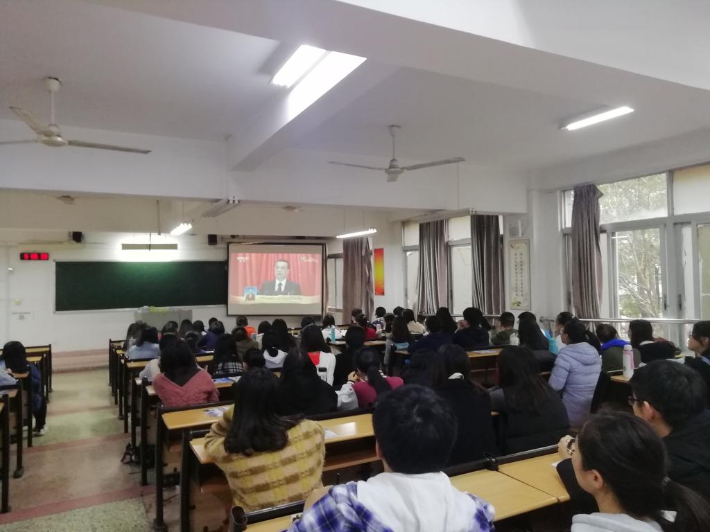 2019年“两会”在北京胜利召开,举国关注。为密切关注国家大事,深刻领会两会精神,3月5日上午,化学学院组织师生分别在学院会议室和博中203教室观看两会开幕式直播。