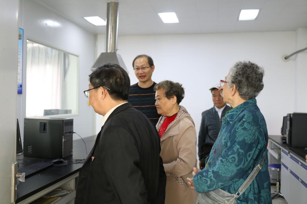 座谈会后,校友们在杨天隆老师的带领下来到学院实验室进行参观,他们对化院学子的学习条件甚是关心,言语中无不透露出对化院学子的殷切期望。