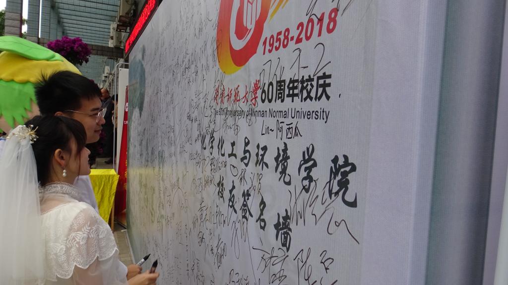 学院设立了校友报到点、宣传视频播放点、明信片书写处、签名墙和校友证合影点。一大早,“回家”的校友们便络绎不绝,学院热闹非凡。栉风沐雨,不惑之年。校友们驻足于学院门口观看学院的校庆献礼片,了解母校特别是母院41年来的发展历程,感受学院一步步的自强之路,纷纷感慨不已。