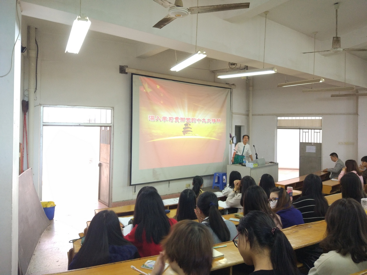 教师、学生党员、积极分子和学生干部代表做了一场关于深入学习贯彻党的十九大精神专题宣讲。