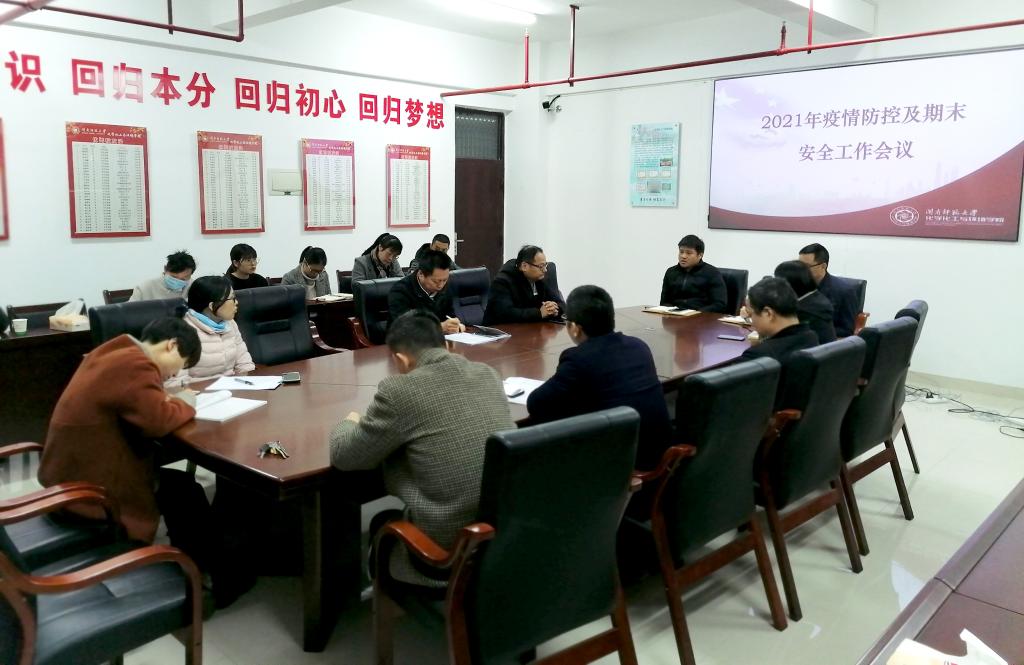 1月7日下午,化学化工与环境学院在科技楼北1103召开2021年疫情防控工作及期末安全工作会议,会议由学院党委书记李苗主持,学院党政领导、辅导员、行政人员及实验室管理人员参加会议。会议传达了2020-2021学年全省学校寒假放假和春季开学疫情防控工作视频会议精神。
