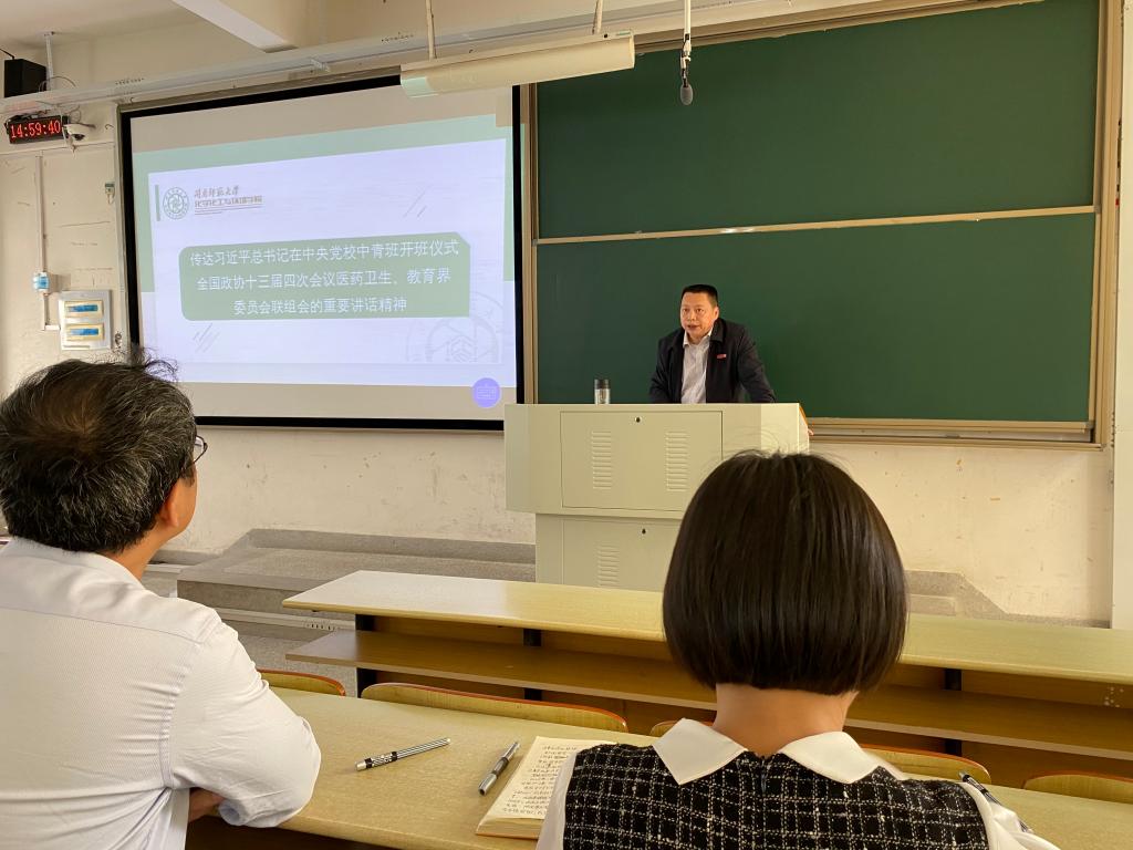 会议伊始,张骁副院长传达学习习近平总书记在中央党校中青班开班式、全国政协十三届四次会议医药卫生界、教育界委员会联组会等重要讲话精神和传达学习学校吴彬镪书记、李顺兴校长在新学期工作会议上的讲话。