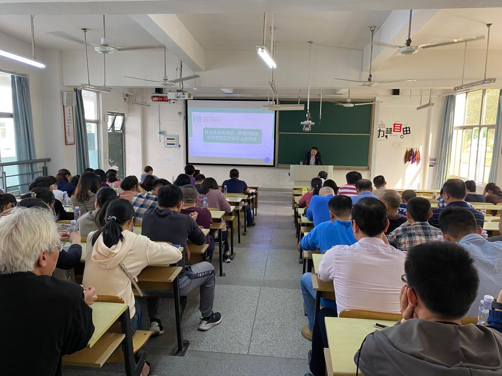 在励志129召开新学期全院教职工大会暨“再学习、再调研、再落实”动员部署会,总结成绩,部署新篇。学院党委书记李苗、院长汪庆祥、院党委副书记陈丽新、副院长陈建华、张骁及全体教职工参会。会议由副院长张骁主持。