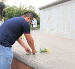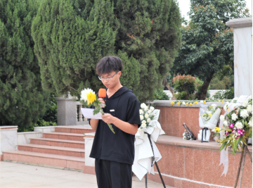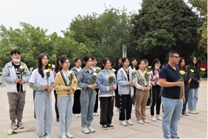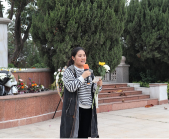 团委副书记杨文亮老师的带领下,参与活动的学生党员、学生干部们怀着无比崇敬的心情向烈士纪念碑敬献鲜花,并默哀悼念,鞠躬行礼,寄托哀思。