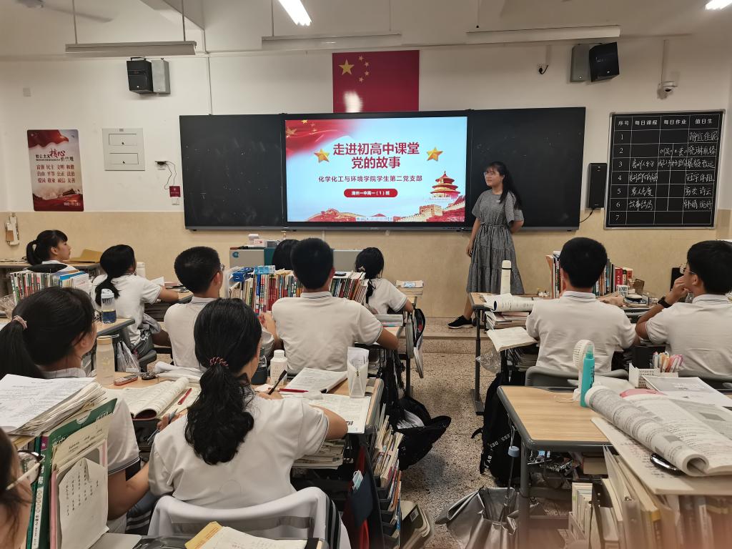 多维对接走进青少年,奏出党史学习教育“交响曲”。“红色馨风讲堂”多维展开,红色基因溢满校园。近30名研究生党员走进本科生班级,宣讲对象覆盖18-20级各班;近百名本科生党员走进团员、积极分子群体,通过主题团课、入党积极分子培训等形式,讲述老一辈科学家的家国情怀和奉献精神;师范生党员结合专业实习,将“红色馨风讲堂”带进了漳州一中、二中、三中、龙海一中等初高中课堂。台上,党员们用生动的语言、饱满的感情讲述着侯德榜、汪猷、卢嘉锡、虞宏正、傅鹰、杨石先、庄长恭等老一辈化学家爱党爱国、无私奉献,自力更生、艰苦奋斗,大力协同、勇于登攀的故事。台下,同学们聚精会神地聆听,时而做着笔记,时而陷入沉思,时而点头称赞,在榜样力量鼓舞、典型示范引路下,实现了思想上的“共鸣”和行动上的“共振”。