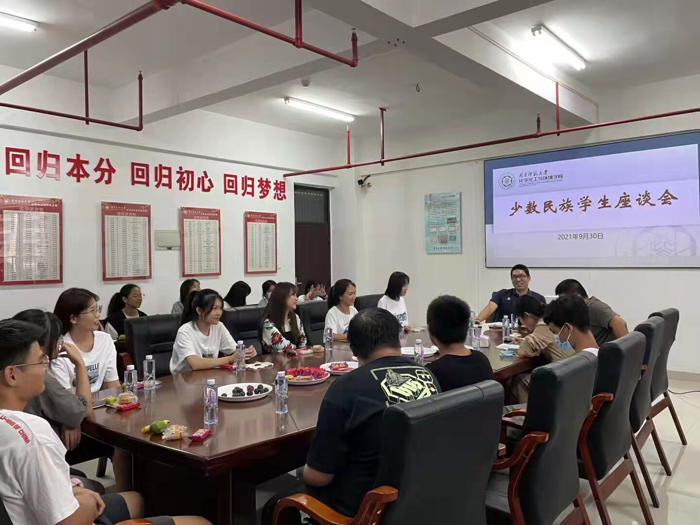 在科技楼北1103会议室组织召开了少数民族学生代表座谈会,学院党委副书记裴新星、团委副书记杨文亮、2021级学生辅导员林燕萍以及来自本科、研究生的少数民族学生代表参加了本次座谈会。