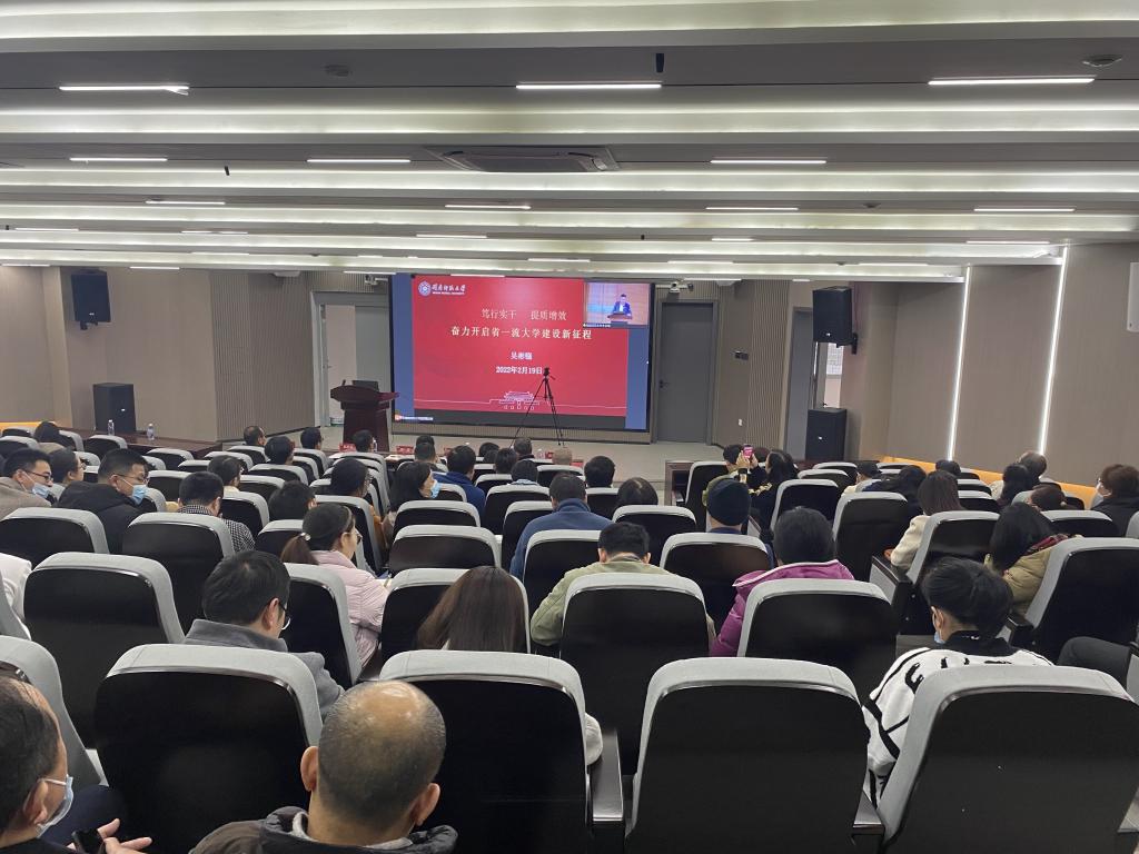 会议第一阶段采用视频会议的形式听取了吴彬镪书记《笃行实干 提质增效——奋力开启省一流大学建设新征程》和李顺兴校长《乘势而上 再谱新篇——为建设省一流大学不懈奋斗》的讲话。