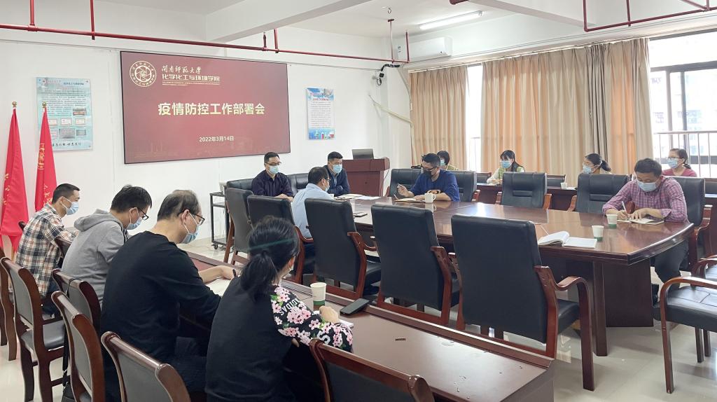 在会议室召开疫情防控工作部署会,会议由学院党委书记李苗主持。学院新冠肺炎疫情防控工作组成员参加会议。
