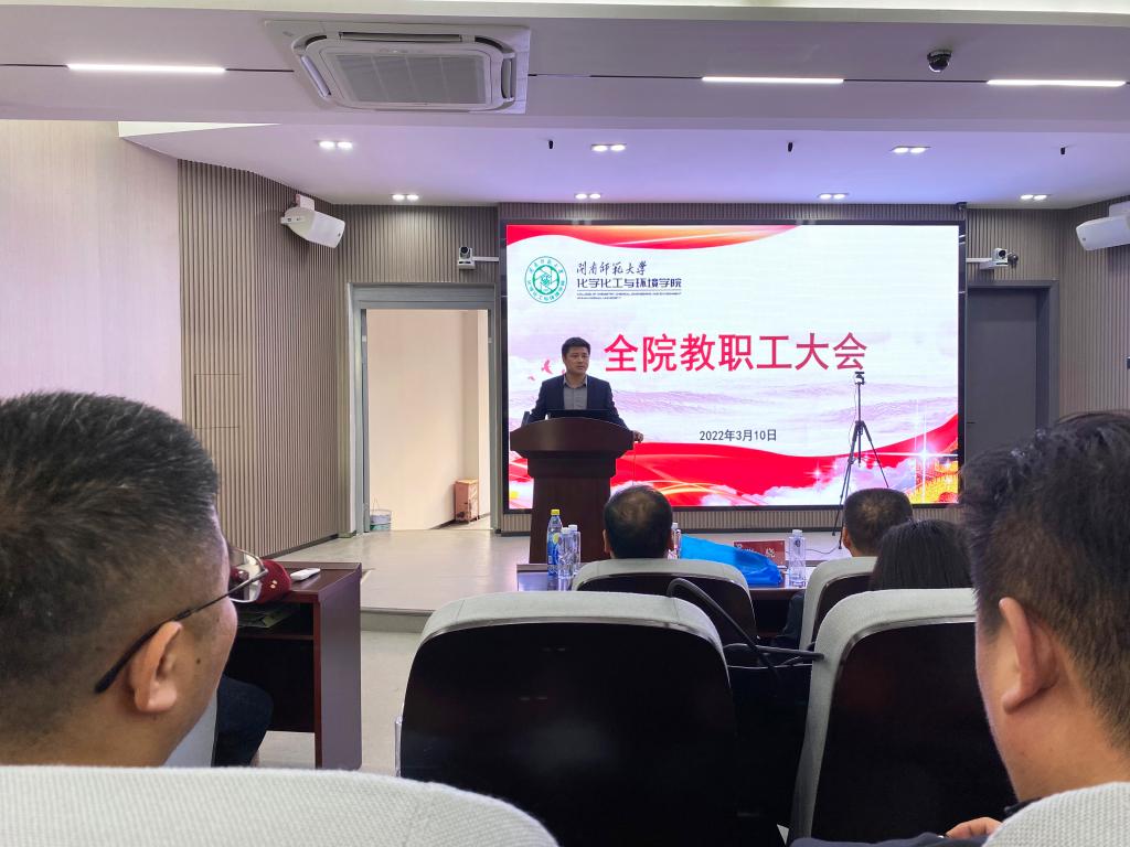 在达南206召开全院教职工大会,传达学习近期学校相关工作会议精神,对新学期学院工作进行专项部署。会议由院长汪庆祥主持。