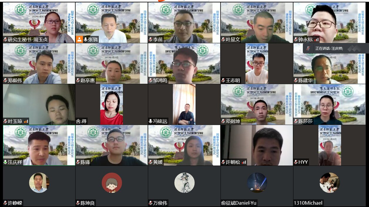 2022年同等学力硕士研究生开班仪式在云端举行,会议由学院副院长张骁主持,学院党委书记李苗、副书记、院长汪庆祥、副院长陈建华、研究生教学秘书周玉贞及全体同等学力硕士研究生参加了此次开班仪式。