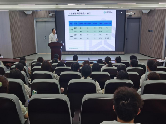 本次考研成绩给予了充分的肯定,深度分析了全国考研情况、本院报考情况、调剂政策、政策优惠等,同时也介绍了学院学位点的发展历程,表明考研的趋势性及学院的美好前景,鼓舞同学们考研的信心。接着,副院长张茂生老师对报考第一志愿的重要性及考研态度进行了解读,强调考研对未来就业的意义,提出考研有助于意志力的形成、学习方法的掌握、自我管理的提升。以幽默风趣的语言,结合自身研究生经历为同学们答疑解惑。